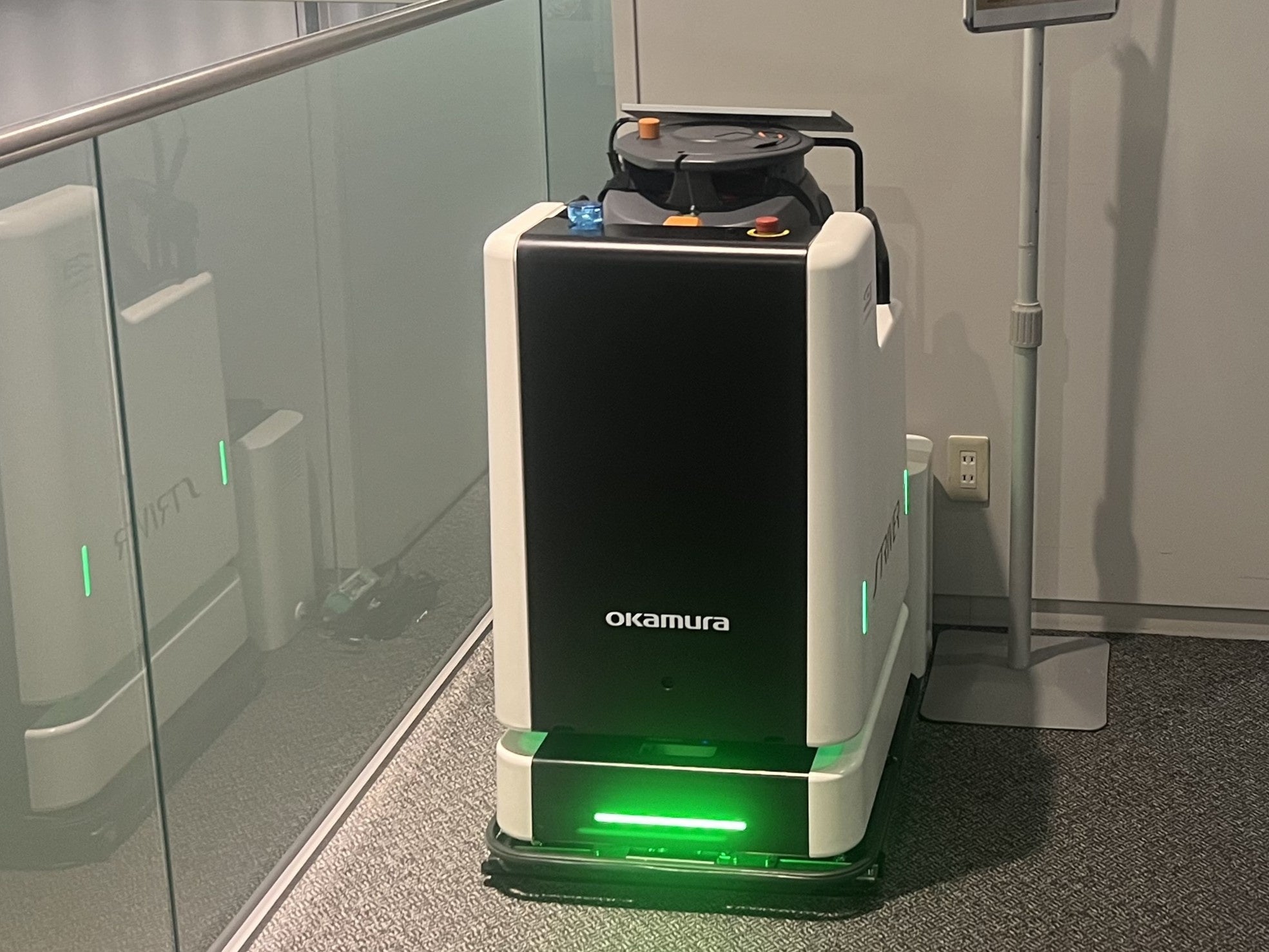 除塵型清掃ロボット「STRIVERII」は、メカナムホイールを採用しており、正面を向いたまま前後左右へ自在に移動することができます。さらに、コントローラーで操作が可能なため、扱いやすい設計となっています。今後はエレベーターとの連携により、各階へ自動で移動できるロボットとしての活用が期待されています。