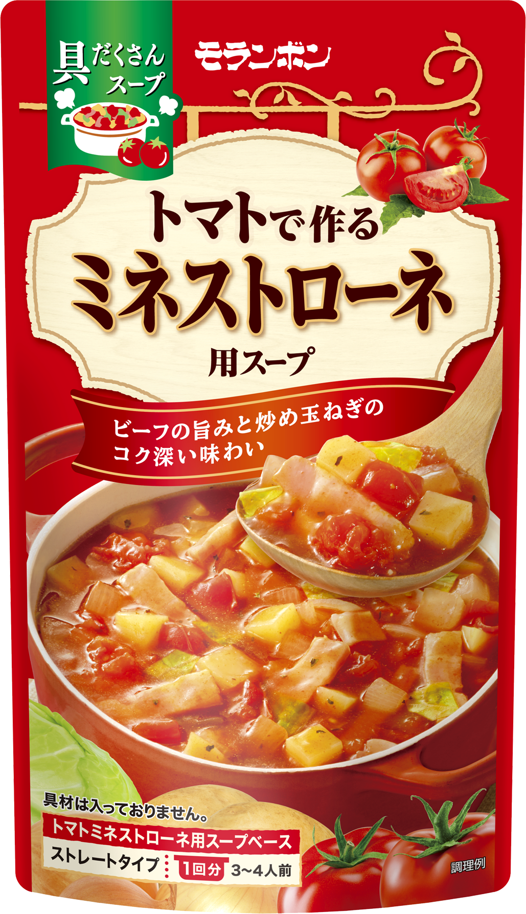 モランボン株式会社(本社:東京都府中市 代表取締役社長:全 峰 碩)は、青果売場向けの商品として、「トマトで作る ミネストローネ用スープ」を2026年2月15日(日)よりリニューアル発売いたします。