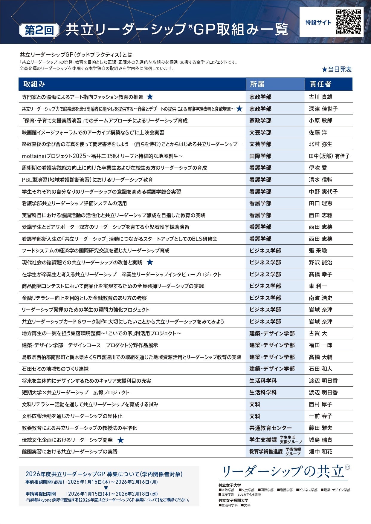 共立女子大学・共立女子短期大学(東京都千代田区 学長:佐藤 雄一)は、リーダーシップ教育の成果発表を行うシンポジウム「多様な実践が育む共立リーダーシップのかたち ~教職員一人ひとりの挑戦から広がる学び~」を2026年2月18日(水)に共立講堂で開催いたします。
