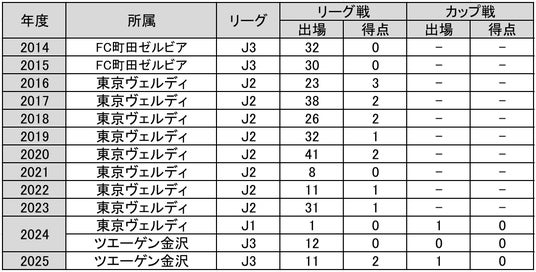 東久留米ひばりSC - 横河武蔵野FCJrユース - 東京ヴェルディユース - 法政大 - FC町田ゼルビア - 東京ヴェルディ - ツエーゲン金沢