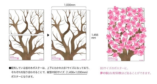Dreamパートナーには、桜の木をモチーフにした「夢を書いて貼り出す」ための「夢の桜カード」、「桜の木台紙ポスター」を無償でお配りしております。桜のカードに夢を書いて、ポスターに貼り付けていただくことで、参加した方々の夢を、施設内やオフィスの一角に貼り出していただけます。