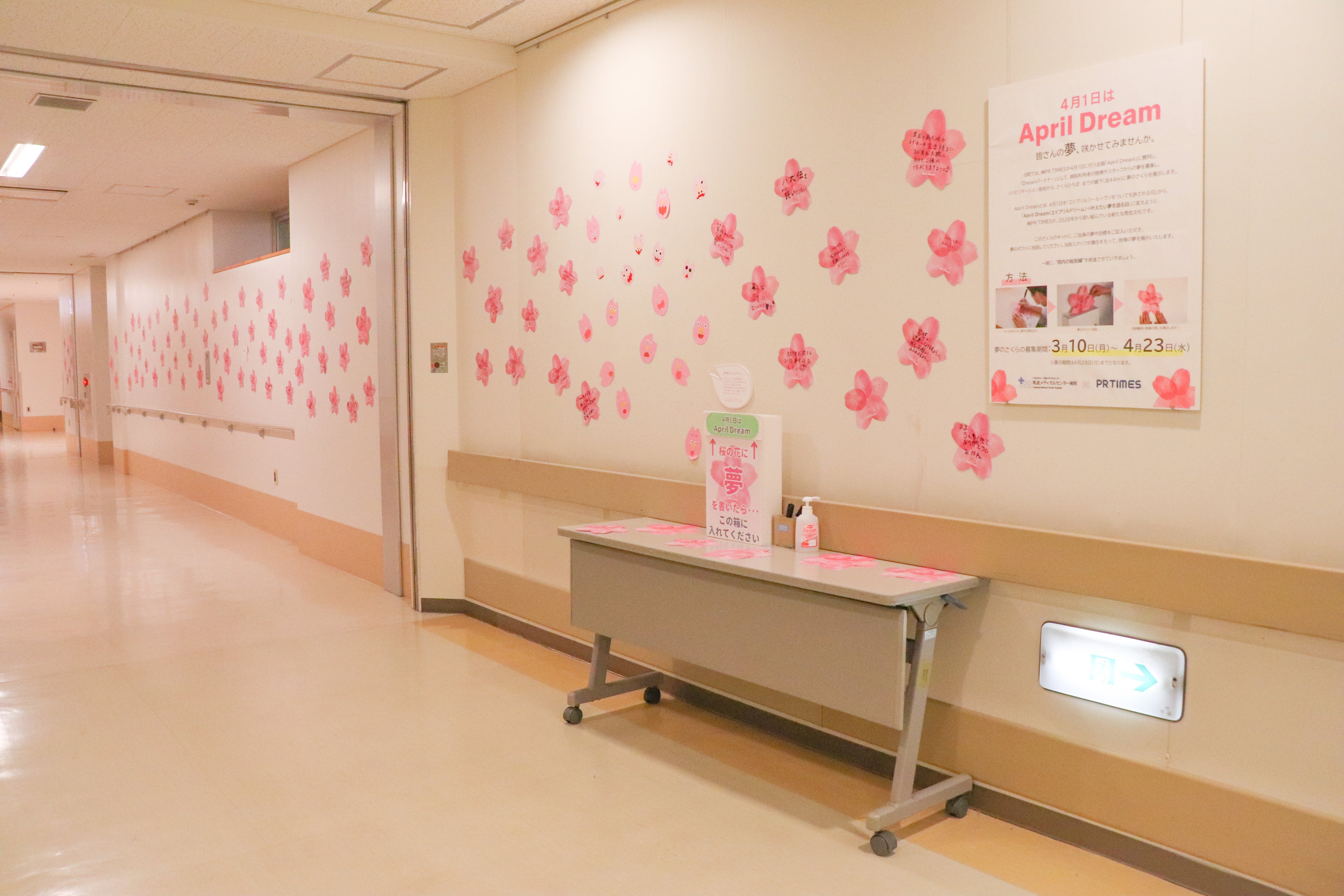 夢を記した桜のキットで、社会を明るくしたい”という想いが、当院で行われている「病院アート活動」の想いとつながり、2024年より参画しています。昨年寄せられた夢には、ご家族の回復を願うものや、患者さん自身が退院後に叶えたい夢など、病院を利用する方々の前向きな気持ちを引き出し、院内を明るくする言葉が並びました。昨年咲いた377枚を超える多くの夢の桜が、今年も院内に開花することを楽しみにしています。