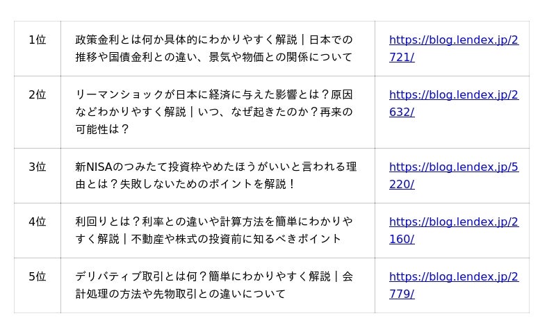 こちらのランキングでも、投資情報・金融知識に関する基礎解説記事が上位を占める結果となっており、公式コラムが初心者から経験者まで、幅広い層の読者ニーズに応えていることがうかがえます。