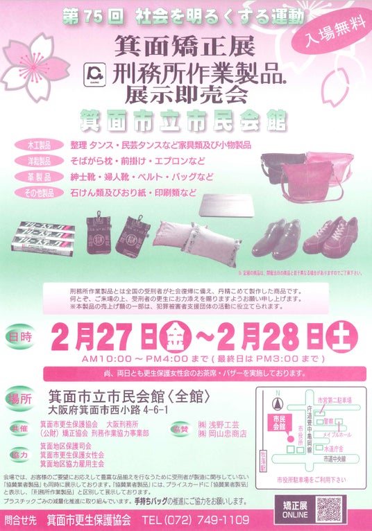 第75回社会を明るくする運動 箕面矯正展「刑務所作業製品展示即売会」を開催します。