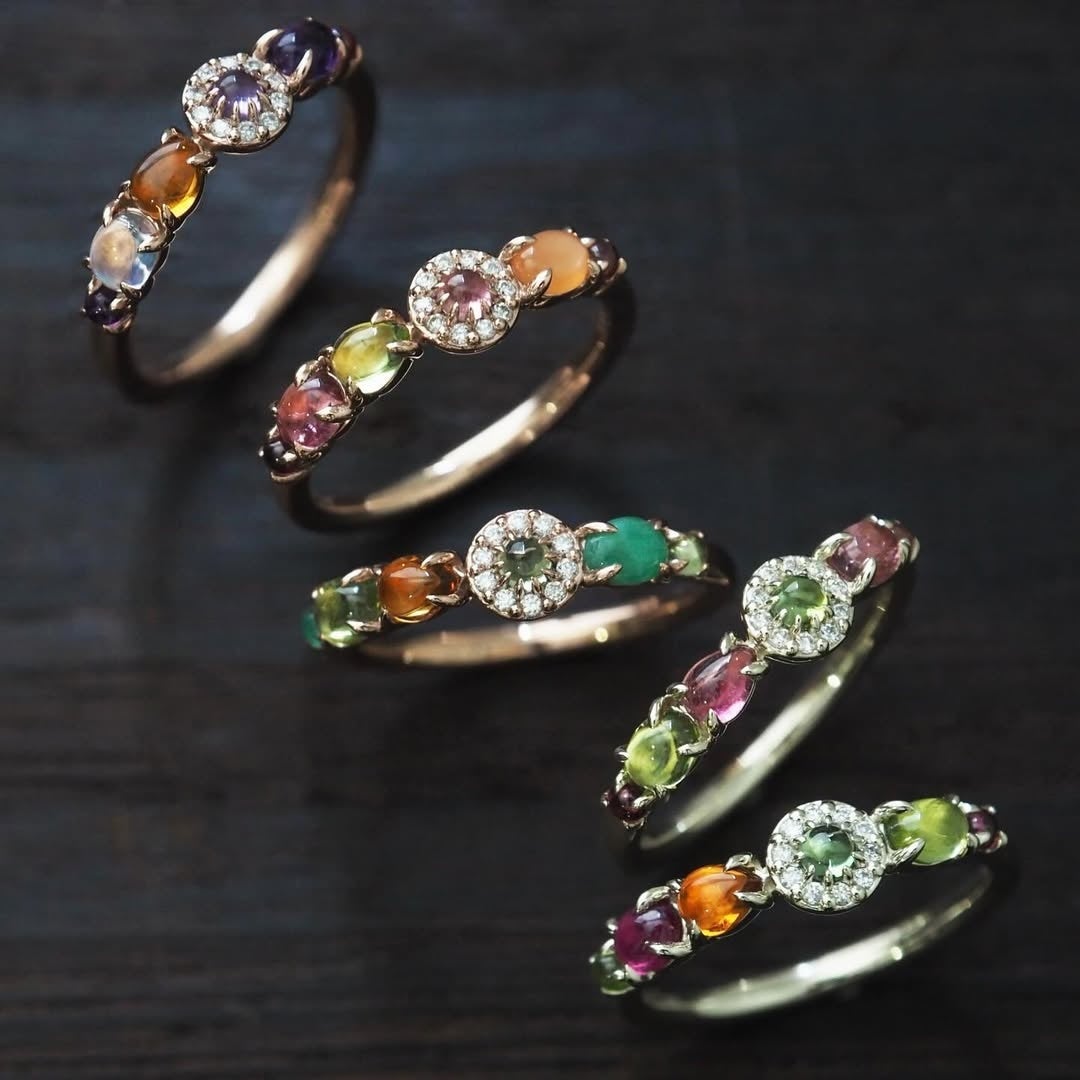 ポップアップショップで、限定ジュエリーと並んでご好評をいただいているのが、カスタムオーダー(セミオーダー)です。経験豊かなバイヤーが厳選した天然石コレクションからお好みの石を選び、日本の職人が一つひとつ手仕事でジュエリーに仕立てます。会場ならではのラインナップや、通常は目にする機会の少ない石も並びます。石を選び、デザインを決めていく過程を通して、1点もののジュエリーがかたちになっていく喜びを体感していただけます。