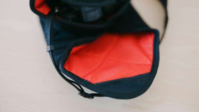 表側はポリエステル地で多少の水なら弾いてくれるので、ちょっとしたハプニング程度ならこわくありません。