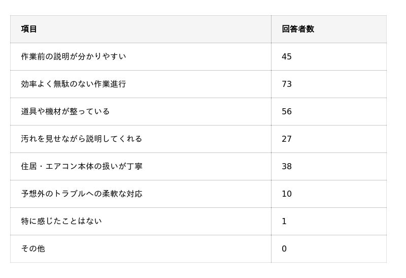 エアコンクリーニングで「この人に任せてよかった」と感じる決め手は何ですか?