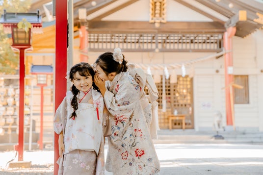 少し照れながら笑う七五三の姿。