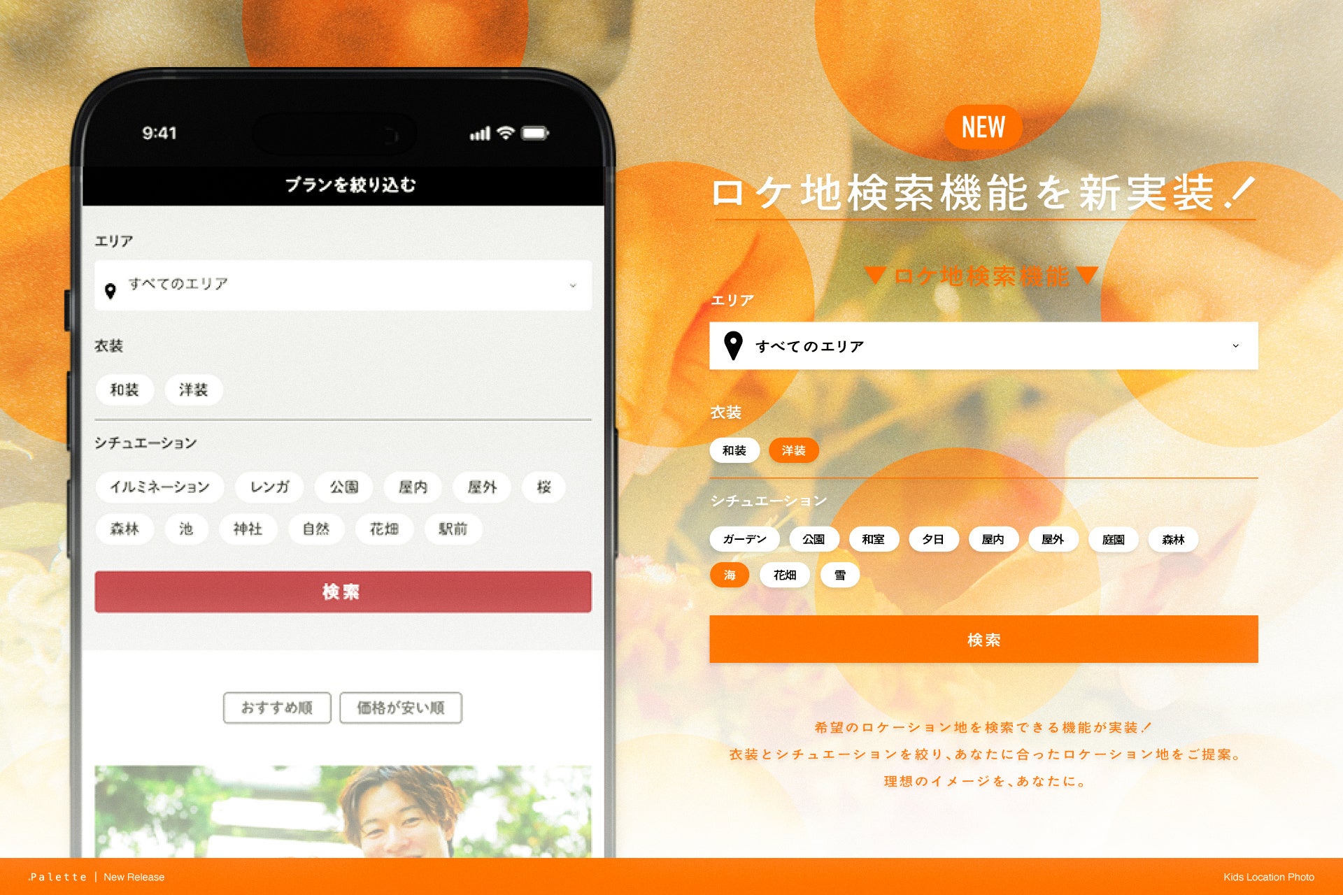 衣装や撮影イメージを直感的に探せる新機能を搭載。お子さまの大切な“今”を、より安心して、より楽しく残せるサイトへと進化しました。