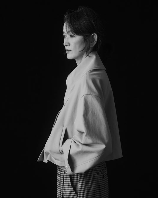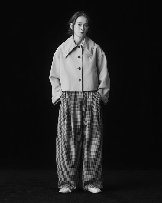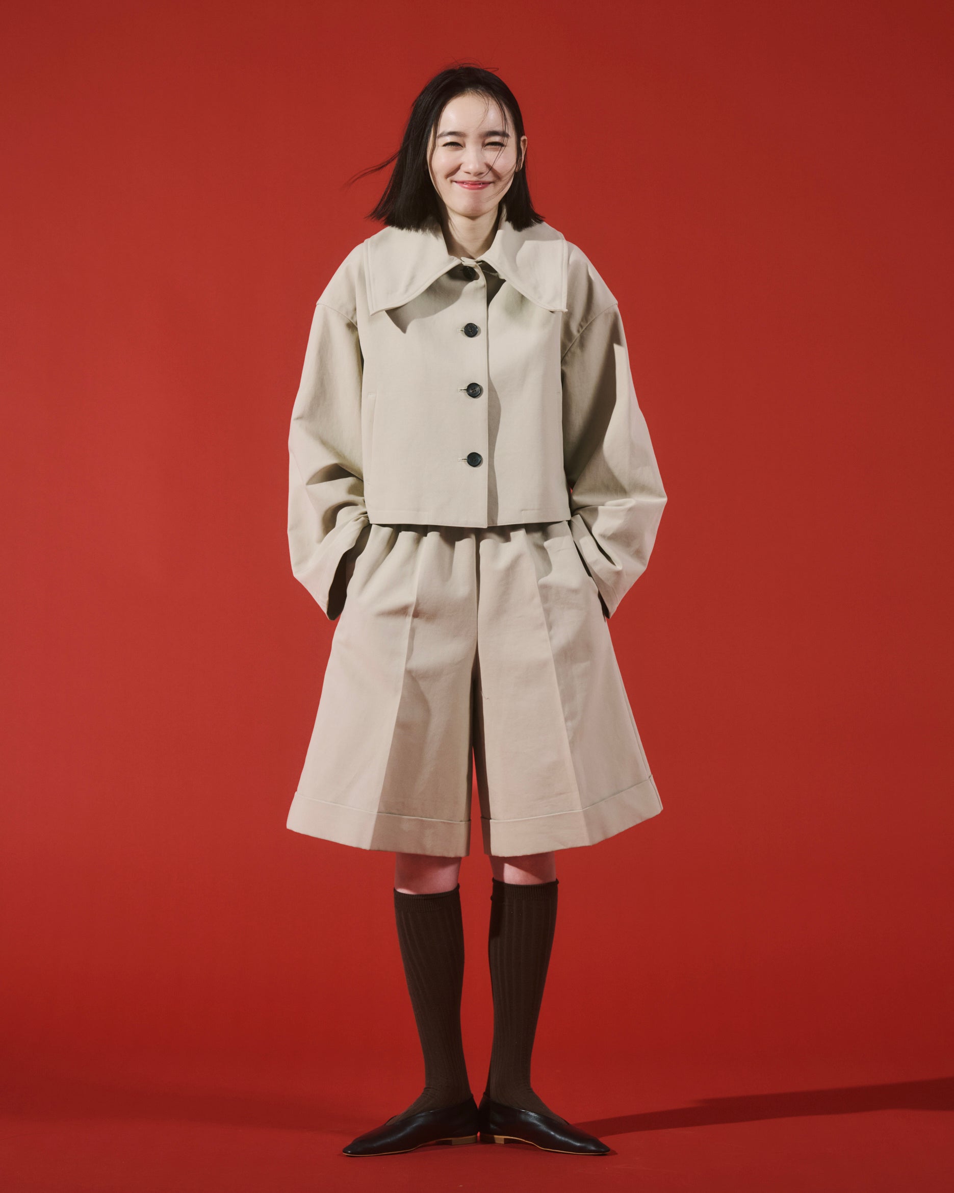 ショート丈に太めスリーブ、たっぷりとしたシルエットはマナさんならではのバランス感覚。