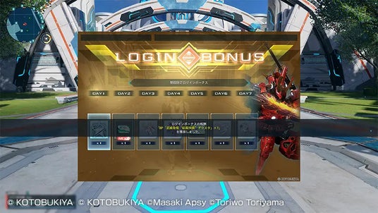 コラボ期間中のゲームへのログインで、『ヘキサギア』『メガミデバイス』とコラボしたビルドパーツなどが7日間獲得できる特別なログインボーナスです。どうぞお見逃しなく!