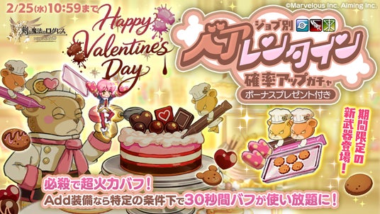 株式会社マーベラス(代表取締役社長:照井 慎一/所在地:東京都品川区)は、スマートフォン向け本格オンラインRPG『剣と魔法のログレス いにしえの女神』において、2026/2/1(日)に新武器がラインナップした「ジョブ別 ベアレンタイン確率アップガチャ」の販売、2026/2/4(水)に「シャンティのプリティコレクション」の開催を含むアップデートを行ったことをお知らせいたします。