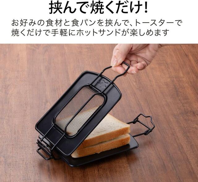 今回のセットには、「ホットサンドメーカー ATHOT02」が付属します。使い方は簡単で、食パンに好みの具材をはさんでトースターで焼くだけ。フライパンや別の調理器具を使わず、手軽にホットサンドが完成します。