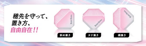 斜め置き、タテ置き、ヨコ置きなど、ハンドルの多面設計を生かして自由にブラシを置くことができます。衛生的:メイク中など一時的に置きたい時も、洗面台や鏡台にブラシの穂先が直接触れることがなく、衛生的です。