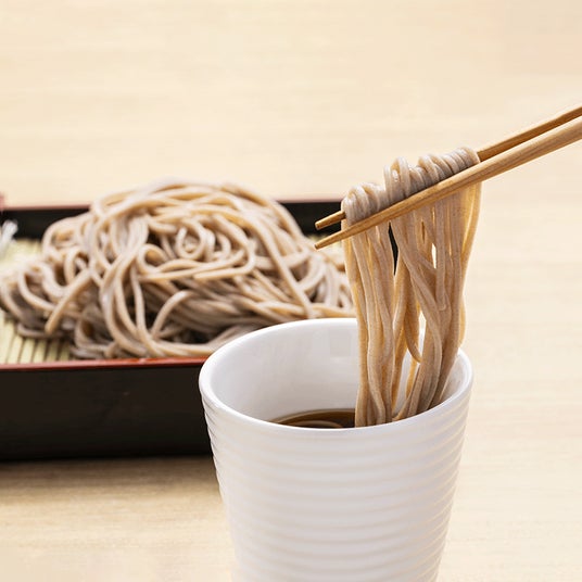 使用している蕎麦粉はすべて希少品種「高嶺ルビー」です。タスマニア産の玄ソバを長野県内で製粉・製麺しました。蕎麦本来の風味を活かしつつ、長期保存が可能な半生タイプに仕上げており、高嶺ルビー特有のほのかな赤みと甘みを感じていただけます。