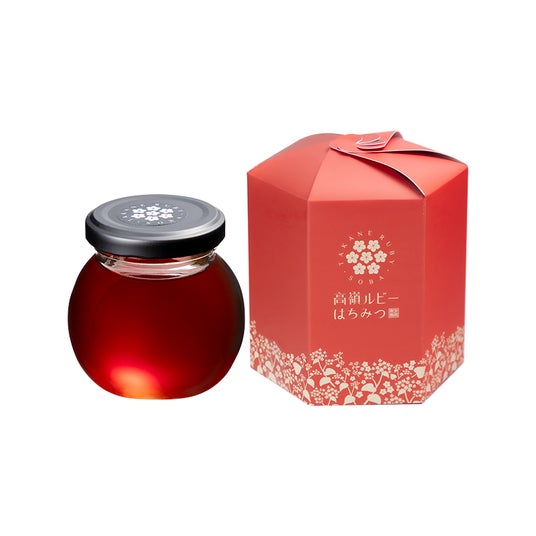自然豊かな信州伊那谷で、日本蜜蜂が希少な赤ソバ「高嶺ルビー」の花から集めた「幻のはちみつ」です。白花そばのはちみつに比べてクセが少なく、コクのある上品な味わいが特徴。年に一度しか採蜜できない貴重な“宝石”のような逸品です。