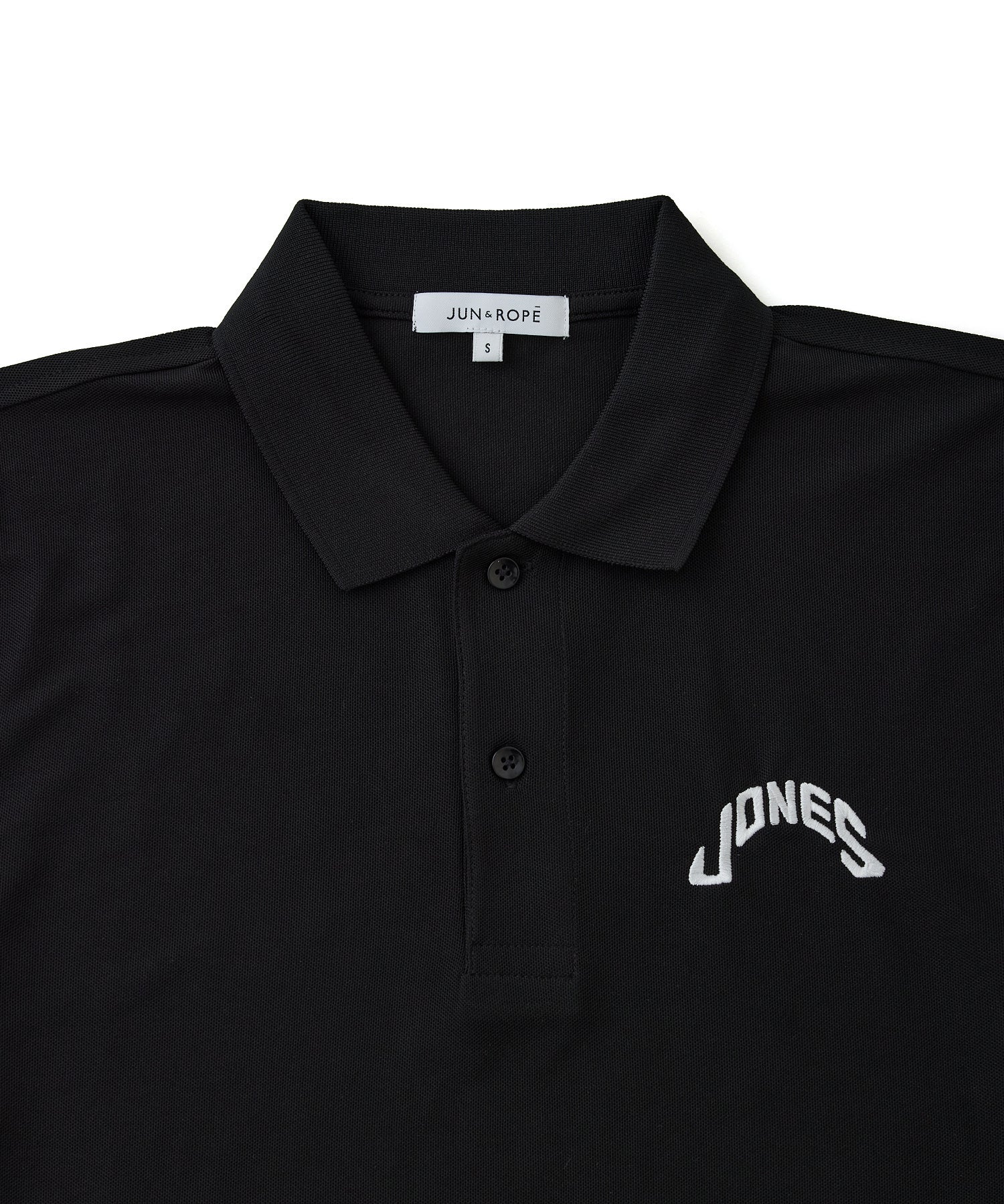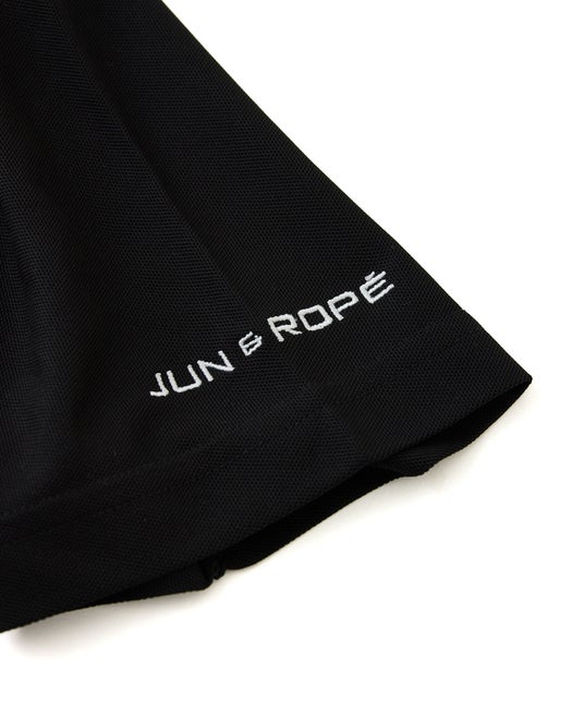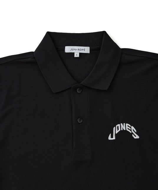 「JONES」のモチーフと「JUN&ROPE」 ロゴをプリントと刺繍で配したドライタッチのカノコポロシャツ。