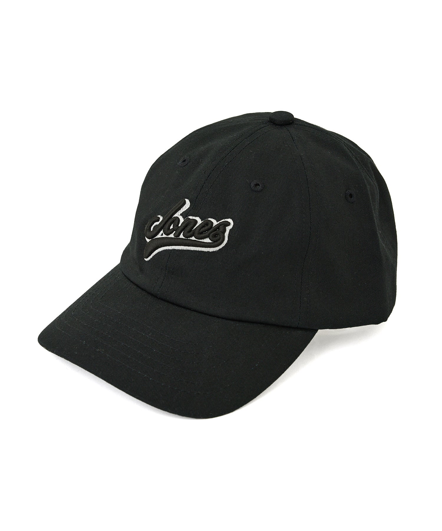 フロントには配色で縁取った「JONES」ロゴの立体刺繍、バックには「JUN&ROPE」のロゴ刺繍を配したベーシックなツイルキャップ。クリップアジャスター付きでサイズの調節が可能。