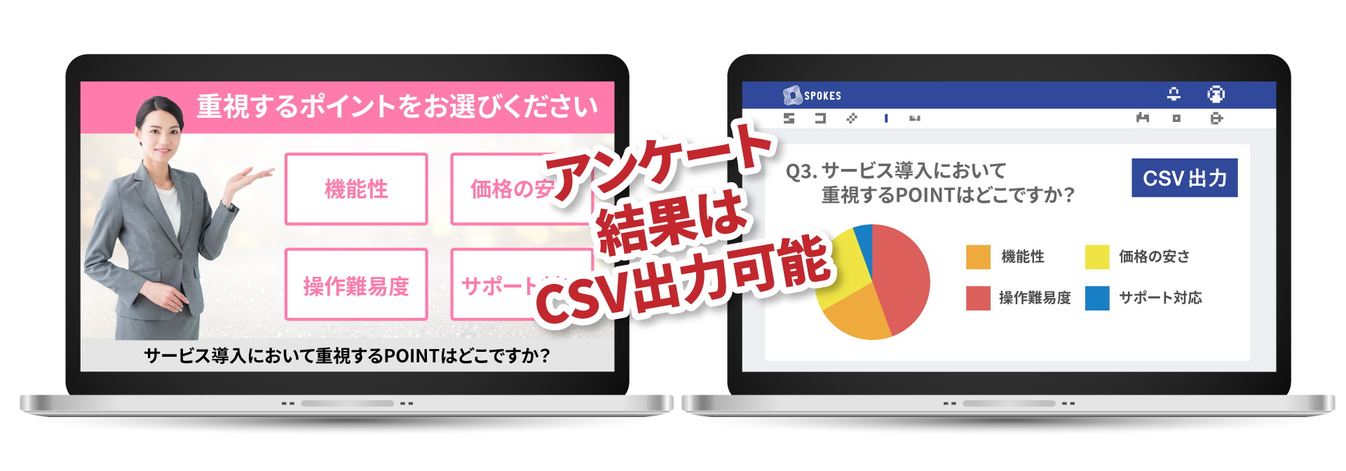 取得したアンケート結果はCSV出力も可能です。動画から取得した定量的なデータを事業にご活用いただけます。