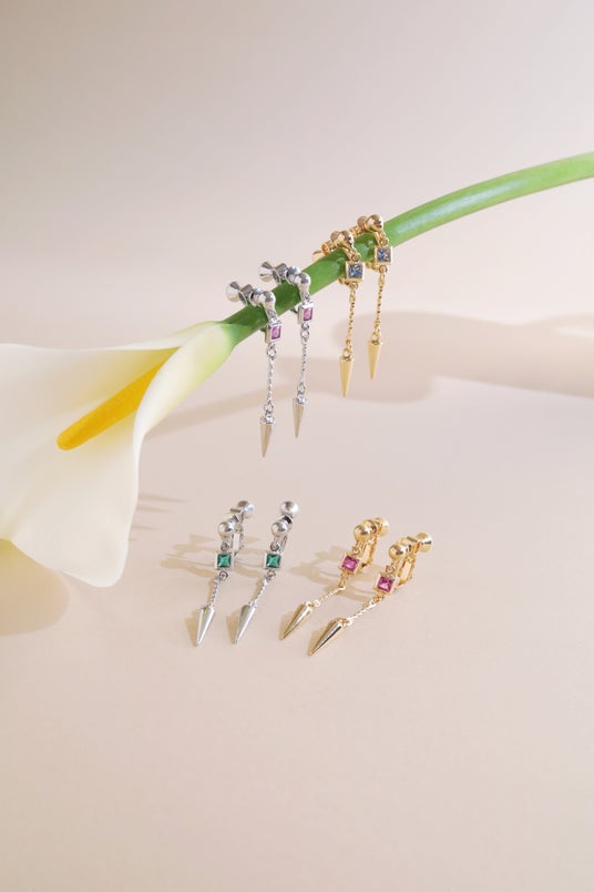 にも起用した尖りあるモチーフを取り入れたピアス/イヤリング。