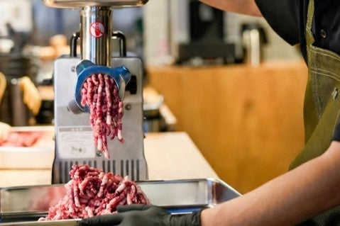 店内で毎日挽き上げる、こだわりの和牛100%。