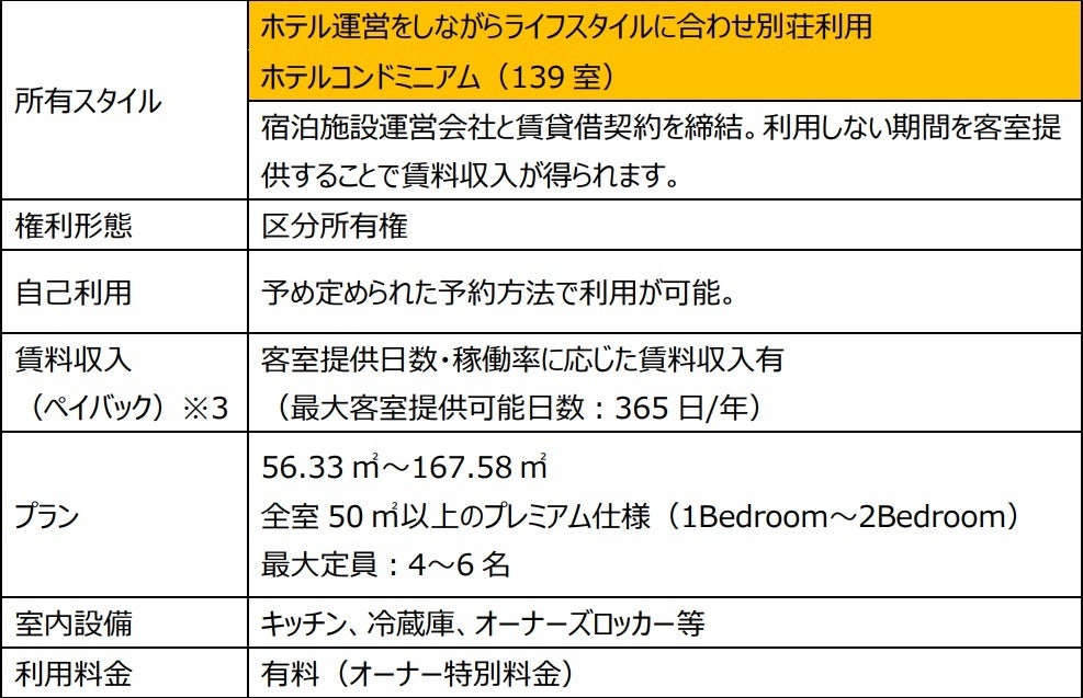 - 全室50平方メートル 以上のプレミアム仕様、寛ぎを提供する充実した館内施設