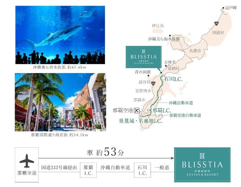 - 那覇空港から車で約53分の好アクセスのリゾート環境