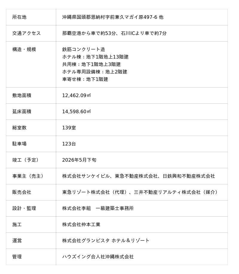 株式会社サンケイビル(本社:東京都千代田区、代表取締役社長:飯島 一暢)、東急不動産株式会社(本社:東京都渋谷区、代表取締役社長:星野 浩明)、日鉄興和不動産株式会社(本社:東京都港区、代表取締役社長:三輪 正浩)は、沖縄県国頭郡恩納村において開発を進めておりました「BLISSTIA(ブリスティア) SUITES & RESORT 沖縄恩納村」(以下、「本物件」という)につきまして、2026年2月6日(金)より一般販売を開始いたしますので、お知らせいたします。