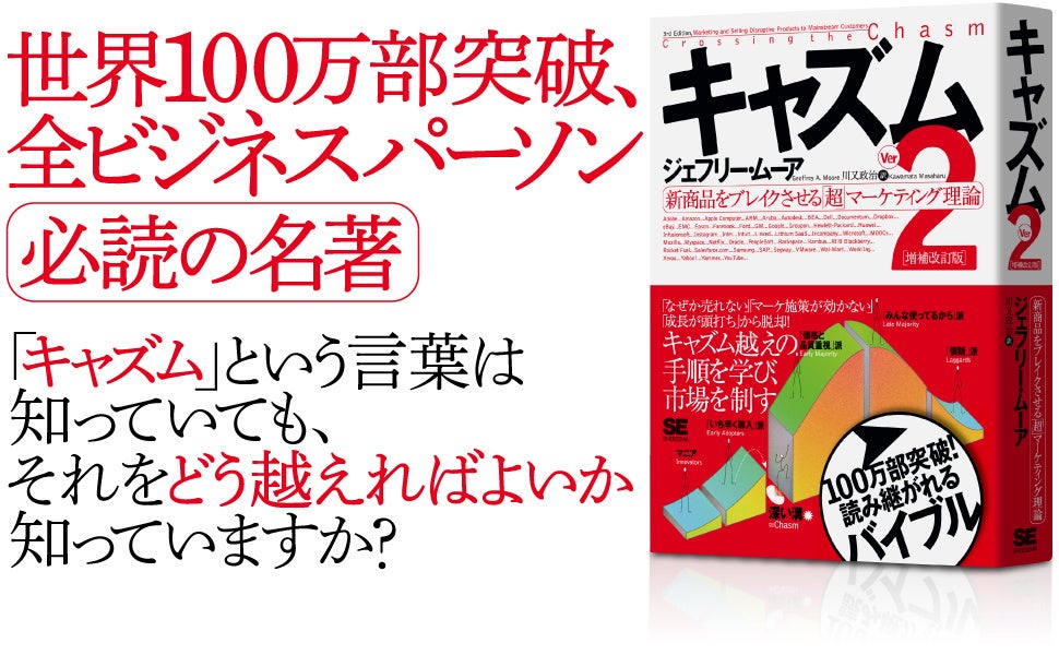 株式会社翔泳社(本社:東京都新宿区舟町5、代表取締役社長:臼井かおる)は、書籍『キャズム Ver.2 増補改訂版 新商品をブレイクさせる「超」マーケティング理論』(ジェフリー・ムーア/著)の重版を決定しました。本書は、新製品を市場に浸透させる際に直面する障壁について解説した「キャズム理論」と、キャズムを越えるための具体的な戦略を示した1冊です。