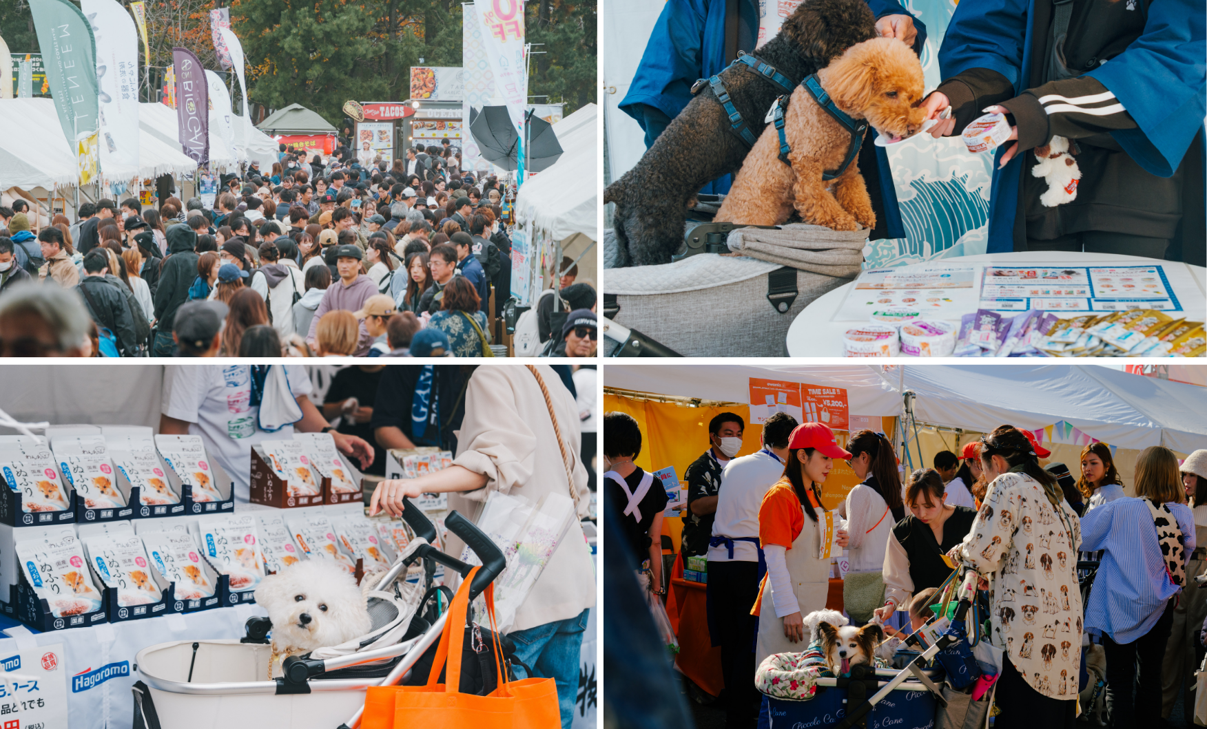 昨年、2025年6月6日~8日の3日間、東京・お台場で開催された「ジャパンわんこフェスタ2025」は、約250店舗が集結し、約10万人が来場した大盛況のイベントとなりました。会場には、おやつや洋服、ヘルスケア商品など多彩なペット関連ブースが並び、来場者は愛犬とともに買い物やさまざまな体験を楽しみました。さらに、多数のキッチンカーも並び、ヒトもわんちゃんも一緒に楽しんでいる姿が印象的でした。また、同時開催された、有名インフルエンサーやYouTuberが集結する「クリエイターズフリマ!」も大きな賑わいを見せ、終日長蛇の列ができるほどの盛況ぶりとなりました。