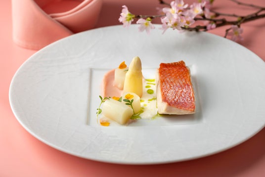 金目鯛のバプール ホワイトアスパラガスのソテー シャンパーニュソース