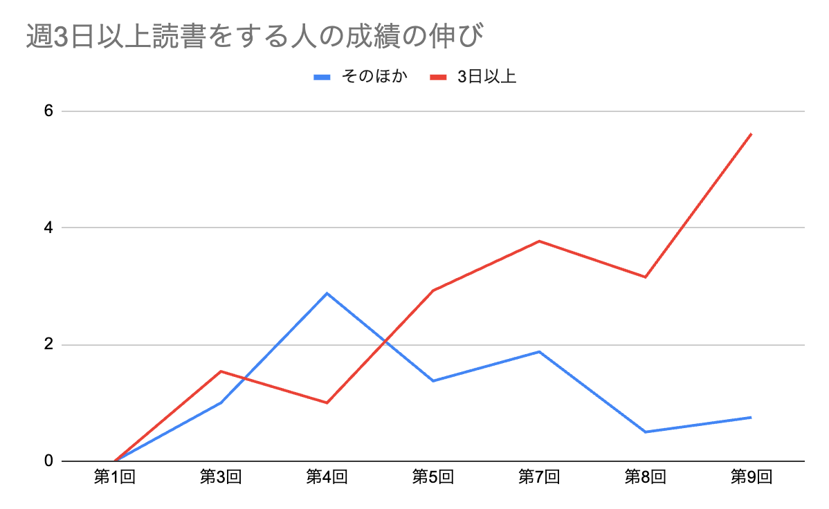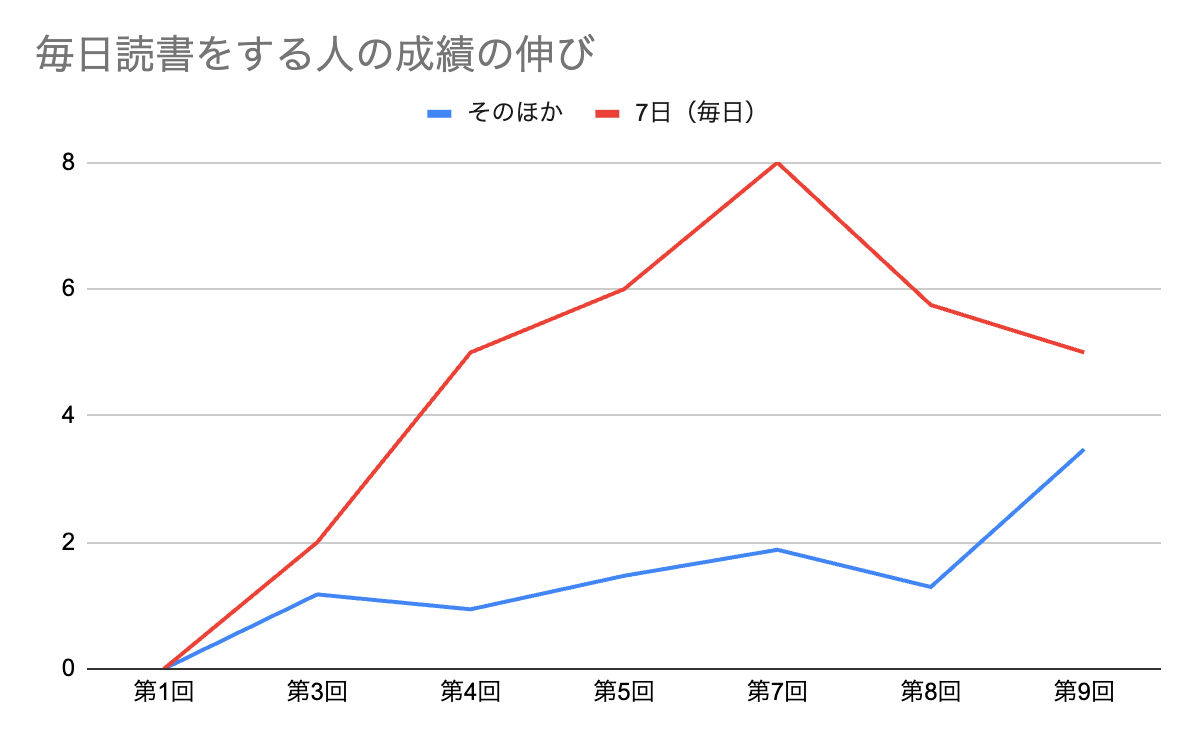 成果2.:毎日の読書で、成績の伸びが約7倍