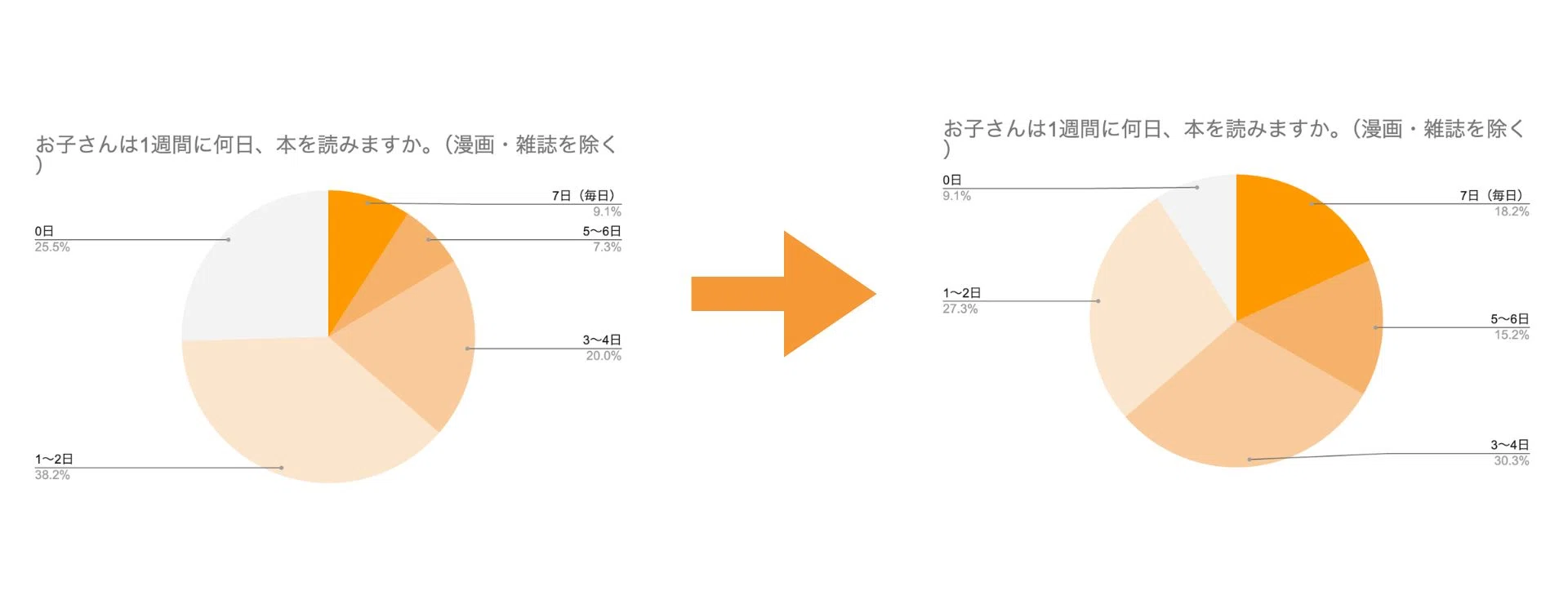 「ヨンデミー」を導入した伸学会での指導により、生徒全体の読書頻度が大きく向上しました。- 週の読書日数0日の生徒:25.5%→9.1%に減少