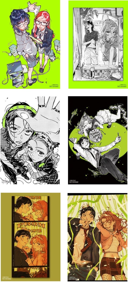 開催期間中、POP UP関連グッズ、「気になってる人が男じゃなかった」関連書籍を、一度のお会計で2,200円(税込)ご購入毎に「イラストカード(全6種)」をランダムで1枚プレゼント!