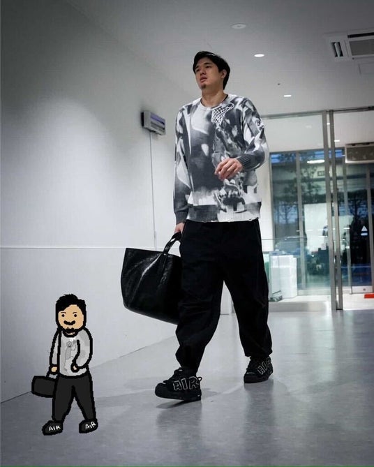 ・会場入りショット×イラスト: 選手が会場入りする際の私服姿(アライバル写真)を撮影し、その場でNBA PAINT氏のイラストと合成。「リアルとアートの融合」を、選手がコートに立つ前のタイミングでリアルタイムに発信しました。