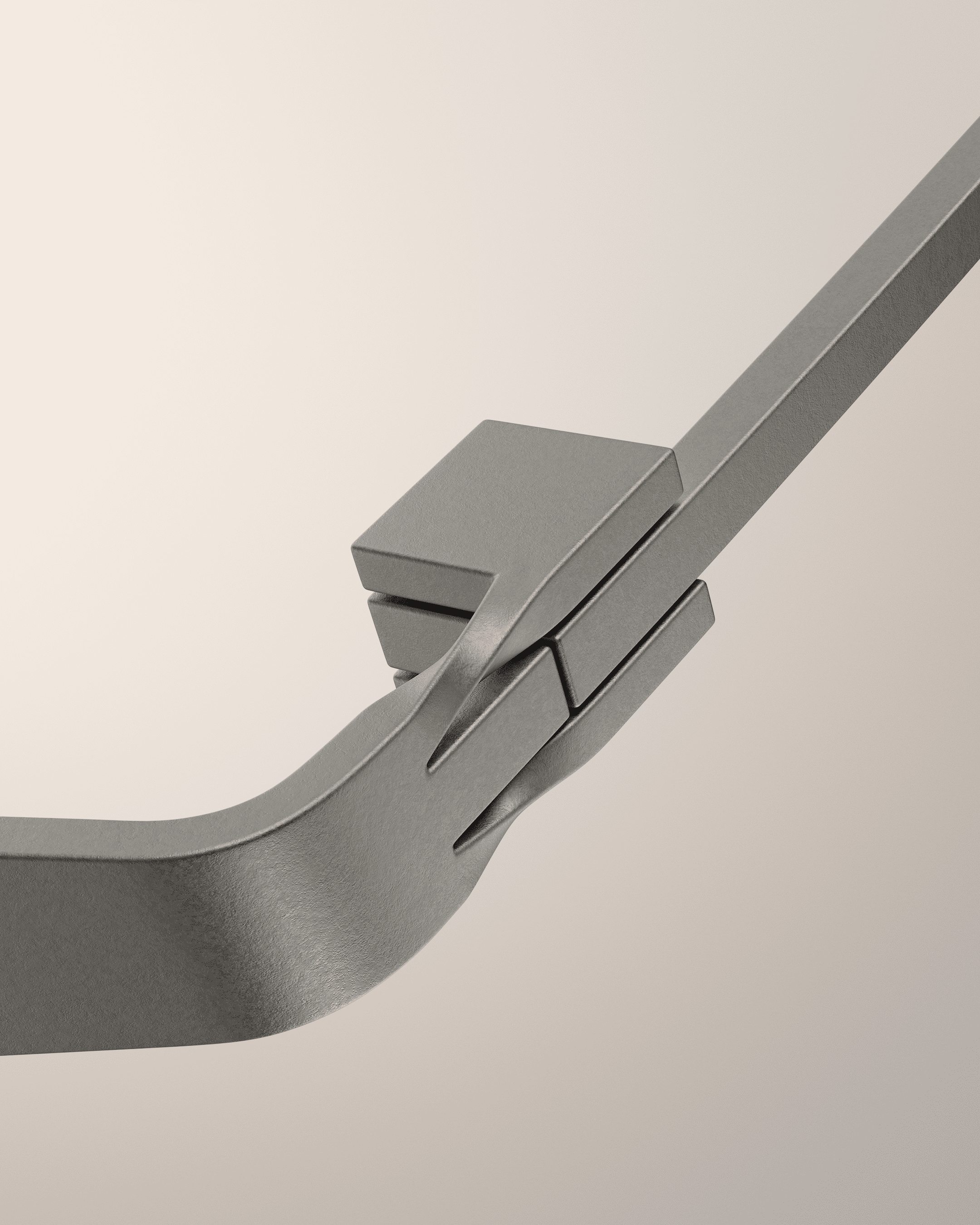 立方体ヒンジの角張ったフォルム言語がチタンフレーム全体のデザインに貫かれ、スタイルに敏感な人に向けて超軽量の彫刻的なアイデンティティを創り出します。