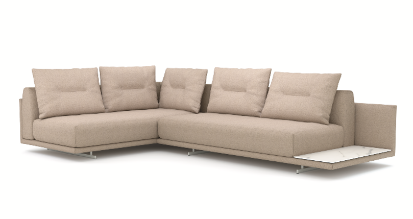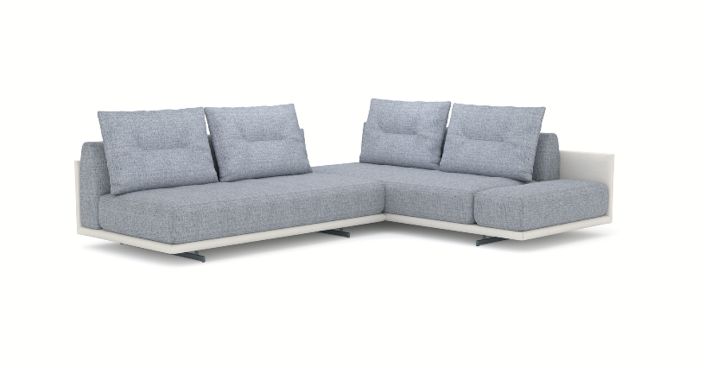 ベースフレーム、シートクッション、背クッションは同色系でのコーディネートはもちろん、それぞれ異なる素材を組み合わせることも可能で、張地やカラーによってソファの印象を自在に演出できます。屋内用・屋外用それぞれに専用の張地コレクションを用意し、屋外仕様には耐候性に優れたファブリックを採用。カバーは取り外し可能で、メンテナンス性を兼ね備えています。さらに、個別のモジュールを組み合わせることで、空間の広さやライフスタイルに合わせた多彩なレイアウトに対応します。