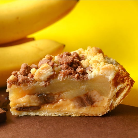 ラゾーナ川崎店限定で登場する『チョコバナナ アップルパイ』は、サクサクのパイ生地に自家製カスタードクリームとたっぷりのりんごを重ね、チョコレートとバナナの“黄金コンビ”を合わせて焼き上げました。