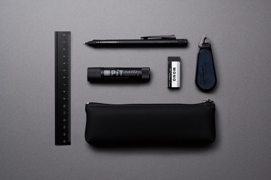 ピットハイパワーSブラック、モノグラフチューン<フルブラック>、モノPE01ブラック、モノエアー5Cダークグレー※定規とペンケースは当社製品ではありません.