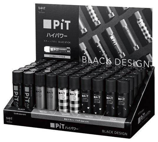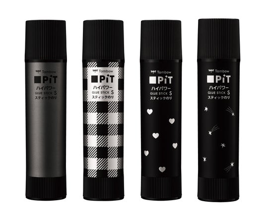 フルブラックのスティックのり『ピットハイパワーSブラック』の定番化を記念して2月12日から『ブラックデザイン限定品』4柄 (容量10g/価格176円(税抜160円))を同時発売します。