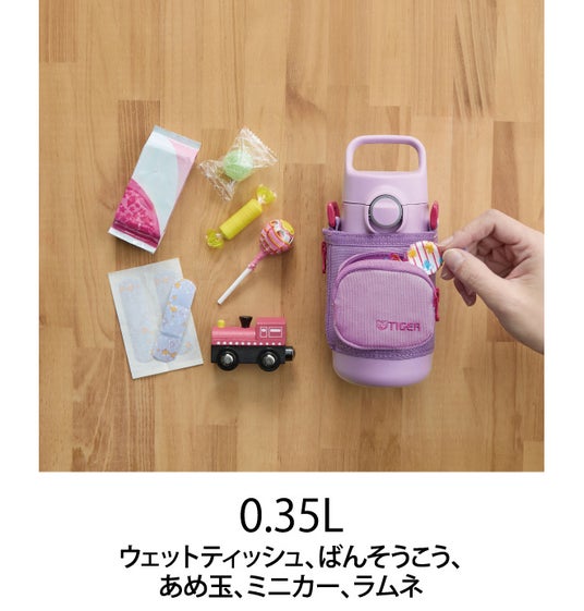 着脱可能なポーチにポケット機能を採用。お気に入りのおもちゃ、万が一のときの小さなケガにも安心なばんそうこう、お腹が空いたときのお菓子など、様々なアイテムを入れることができてお出かけに最適。ボトルを持つ楽しみが無限に広がり、お子さまの「ワクワク」を生み出します。
