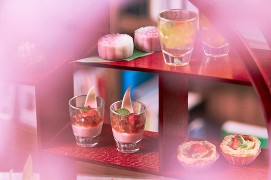 また抹茶の香りが新茶の季節を思わせる「抹茶カスタードクッキー」、春の柑橘・デコポンの爽やかさを閉じ込めた「デコポンゼリー寄せ」、そして“桜”そのものが春の象徴である錦玉羹など、春の訪れを感じる旬の食材を丁寧に取り入れています。春の代表格であるイチゴを使用した華やかなムースとアールグレイのジュレの組み合わせは、春の香りを贅沢に感じていただける逸品です。