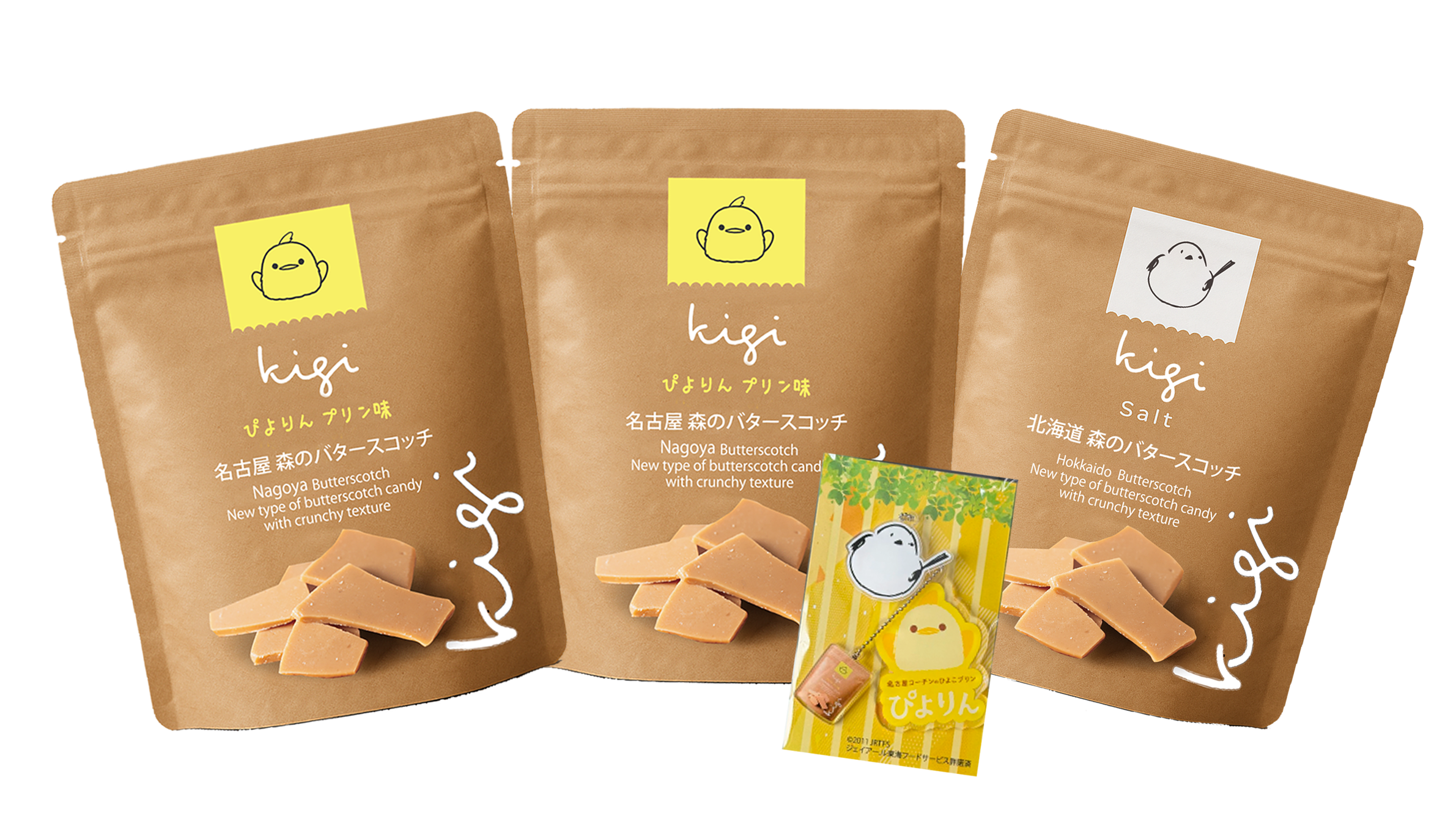 PLUSTA名古屋中央での先行販売では、ぴよりんとシマエナガのアクリルキーホルダーがついた「名古屋&北海道バタースコッチセット」や、北海道で大人気の「北海道バタースコッチ」4種も販売されます。