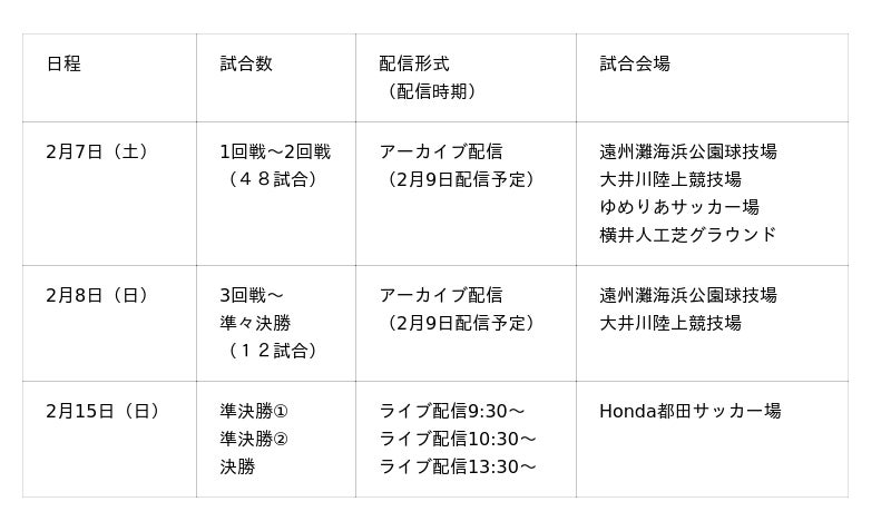 また、2月15日(日)に行われる決勝と準決勝2試合は、更に次世代型ライブ配信サービス「STADIUM TUBE Touch(別添2.参照)」を活用し、AIカメラのほか複数のカメラ映像をタブレット操作により切り替え、テレビ中継のようなリッチな配信を行います。さらに実況を加え、視聴者の方々とリアルタイムのコミュニケーションを楽しみながら、一緒に試合を盛り上げたいと思います。