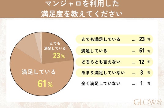 マンジャロの満足度について、「とても満足している」(23%)と「満足している」(61%)を合わせて84%という結果でした。