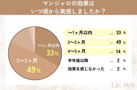 - 効果を感じ始めた時期について「2~3ヶ月」という人が約半数(49%)
