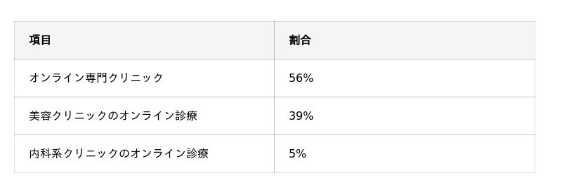 - 診療サービスの種類は過半数が「オンライン専門クリニック」(56%)
