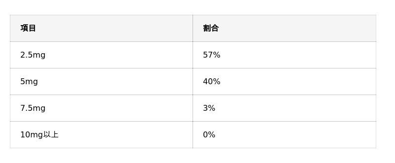 また「5mg」と回答した人も40%いたため、個人差があることがわかります。