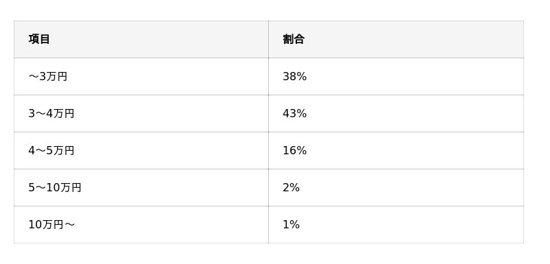 1ヶ月あたりの費用は「3~4万円」という回答が43%と最も多く見られました。
