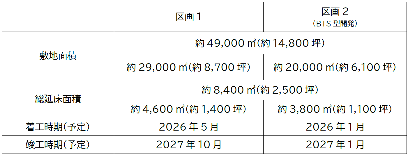 本プロジェクトは、約49,000平方メートル を2区画に分割し、2棟の物流施設を開発するものです。両棟とも当社初のIOS型※1施設で、うち1棟はテナントの要望に合わせて建築するBTS型※2開発です。竣工は、それぞれ2027年1月と10月を予定しています。